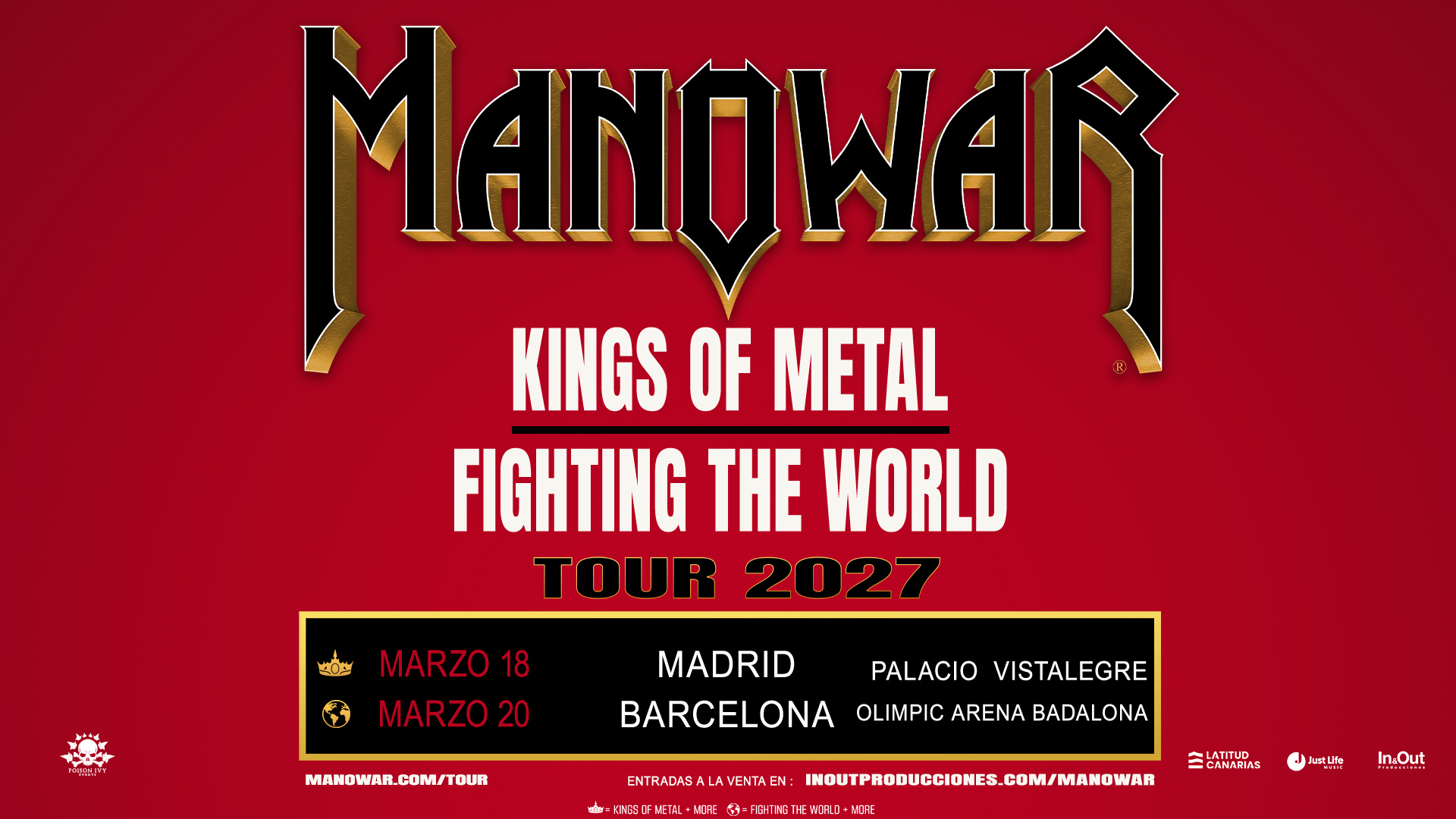 Tickets for both shows will go on sale on Friday, December 19, 2025, at 10:00AM CET on www.inoutproducciones.com/manowar